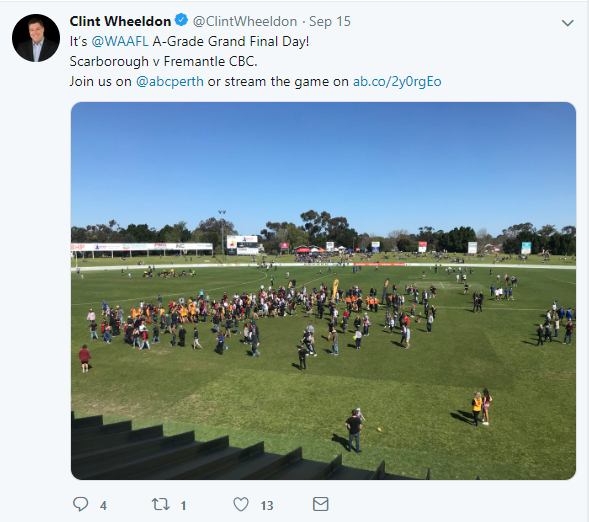 This year the ABC Team led by Clint Wheeldon provided invaluable coverage of the 2018 WAAFL A Grade Grand Final between Scarborough and Fremantle CBC.