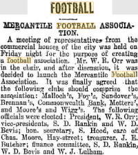 League formed 19th March 1922 as the Mercantile Football Association at the instigation of WANFL Secretary W.R. (Billy) Orr. Six senior mens teams played three matches on the 6th May 1922 at the Showgrounds, Zoo Grounds and Victoria Park.