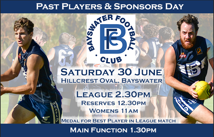 The Bayswater Football Club Past Players and Sponsors Day is on this Saturday 30 June at Hillcrest Oval, Bayswater.