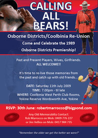 The Coolbinia West Perth Amateur Football club invites all past and present players, wives, girlfriends and family to the “Calling All Bears!” re-union.