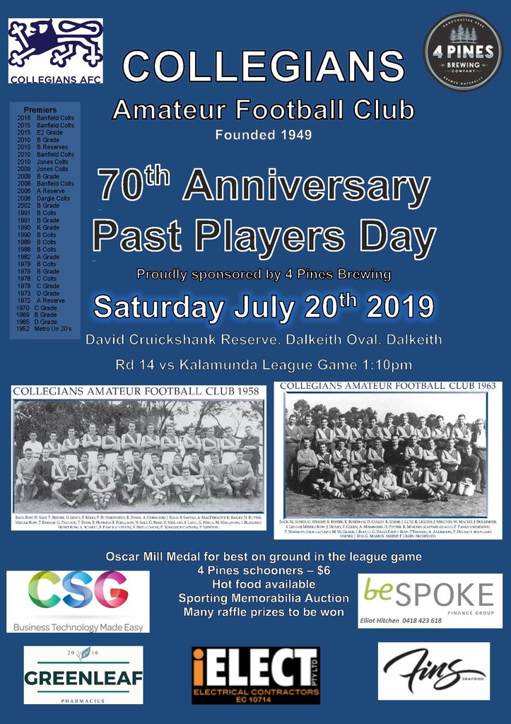 The 2019 Perth Football League season sees Collegians Amateur Football Club celebrate their 70th Anniversary.