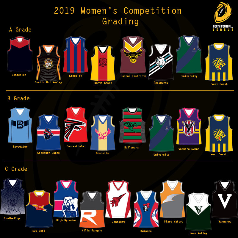 As with the Men’s competition the promotion and relegation system will be enforced in the Women’s Competition with B Grade grand finalists Rossmoyne and Cottesloe to move into A Grade while Bayswater move down into B Grade. The eight new clubs joining the competition will begin in the newly formed C Grade with Hills Rangers also joining C Grade after being relegated from B Grade.