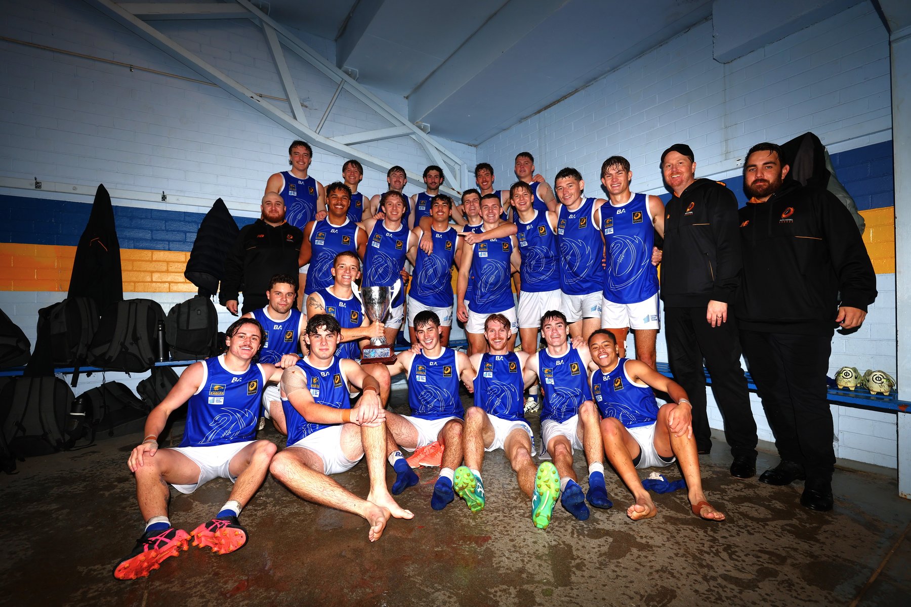 The EGT Colts clash kicked off at 5:30pm marking the beginning of the very first ‘battle of the river’ between the North in red coached by Tom Medhat and the South in blue coached by Fabian D’Agnone. With the wet weather creating quite the challenge for the boys, the South team was strong right from the beginning kicking the first goal of the game and leading going into half time at 19-2.