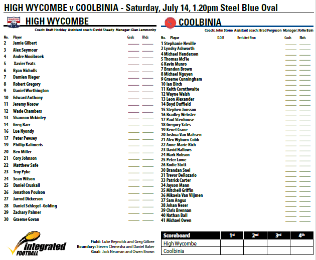 High Wycombe are currently sitting undefeated on top of the Integrated ladder as they come up against Coolbinia who have won the past three Integrated Grand Finals. Last time the two sides met was back in round seven when High Wycombe took the win by seven points.