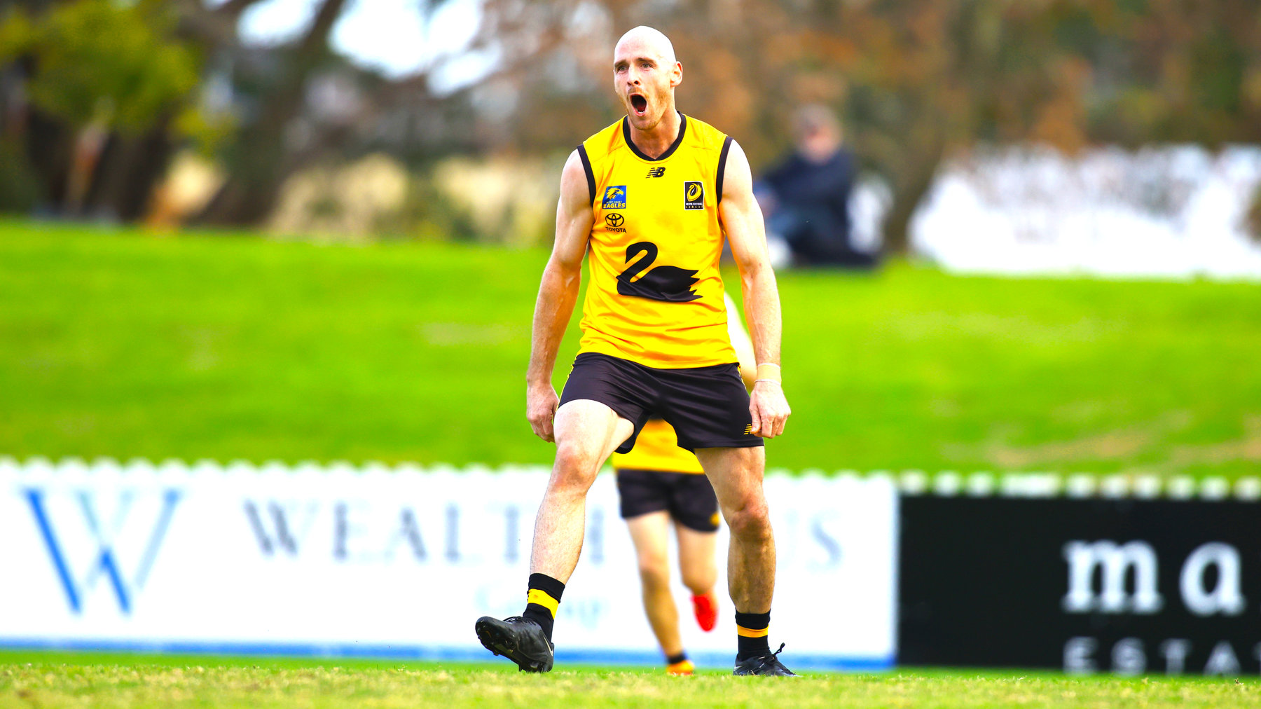 Curtin Uni Wesley’s Chris Leonard, however, has no such problem with his 48-metre set shot sailing through for a goal, seemingly sealing it for Perth.