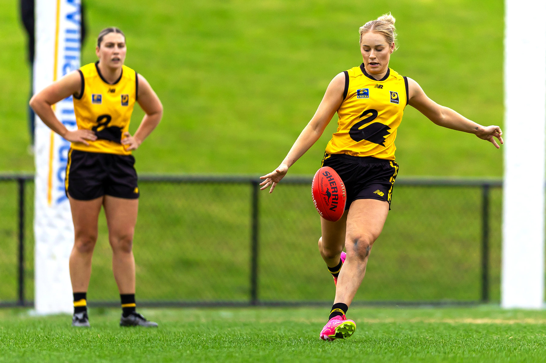 After a tight contest in the opening half of the first quarter, Sophie Stewart broke the deadlock for the Vics with a clever snap. Molly Simpson was awarded a free kick and extended the lead, before Warnbro Swans captain Alyssa Smogavec opened the scoring for Perth with a major.