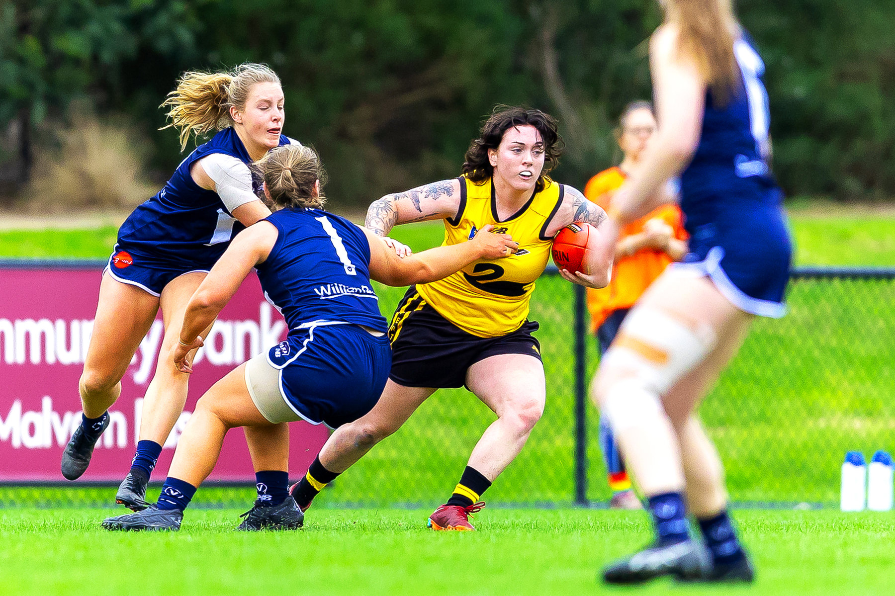 Coming out after the main change, Perth lifted their intensity around the ball, and surged the footy forward at every opportunity. Despite the momentum of the play on their terms, they were unable to impact the scoreboard with the Big V defence standing tall, led by Annie Xanthos, Amy Duguid and Kirsty De Pelligrini, who had the tough task of shutting down Waverley Jones who’s kicked 40 goals for Melville this season from 13 games.
