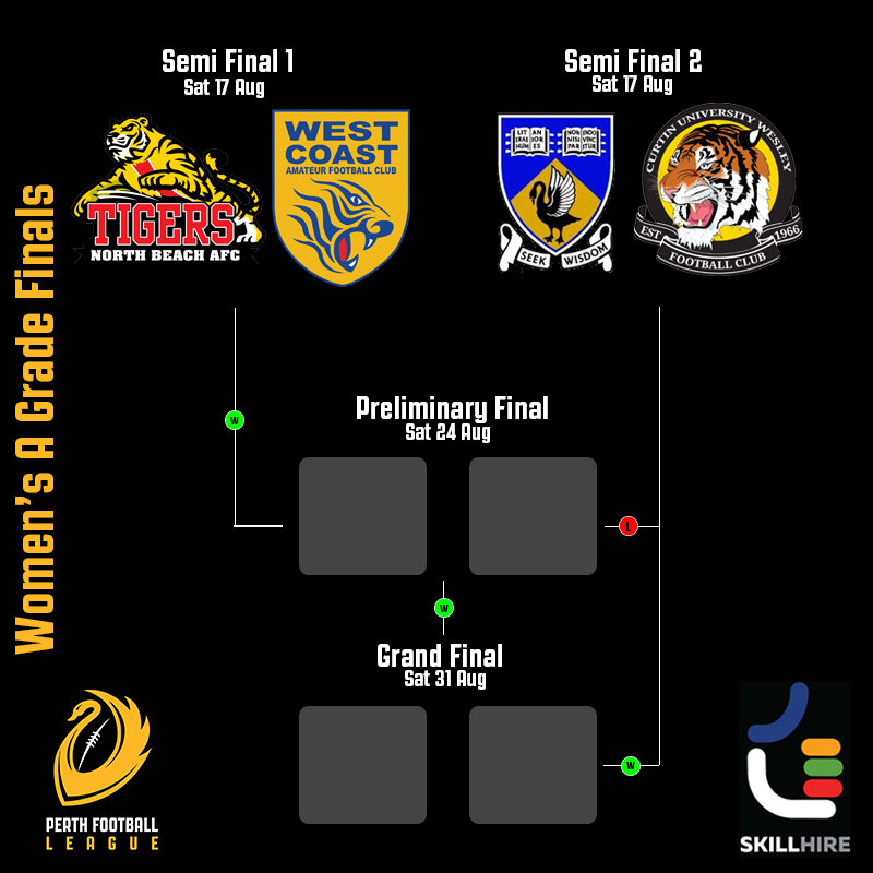 North Beach (3rd) and West Coast (4th) will compete in Semi Final 1 with the defeated team to be eliminated. The winner will face off with the loser of Semi Final 2 next weekend.
